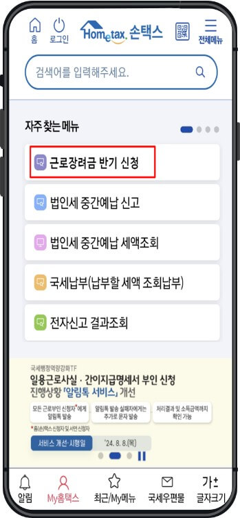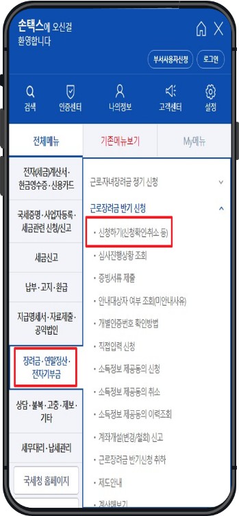 모바일 홈택스 일명 손택스 앱을 다운로드하여서, 앱에서 장려금을 신청하세요.